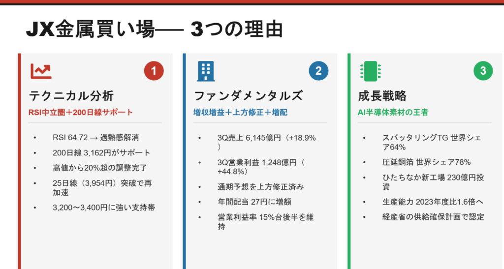 【JX金属】今週の振り返りと「ここが買い場」と考える3つの理由