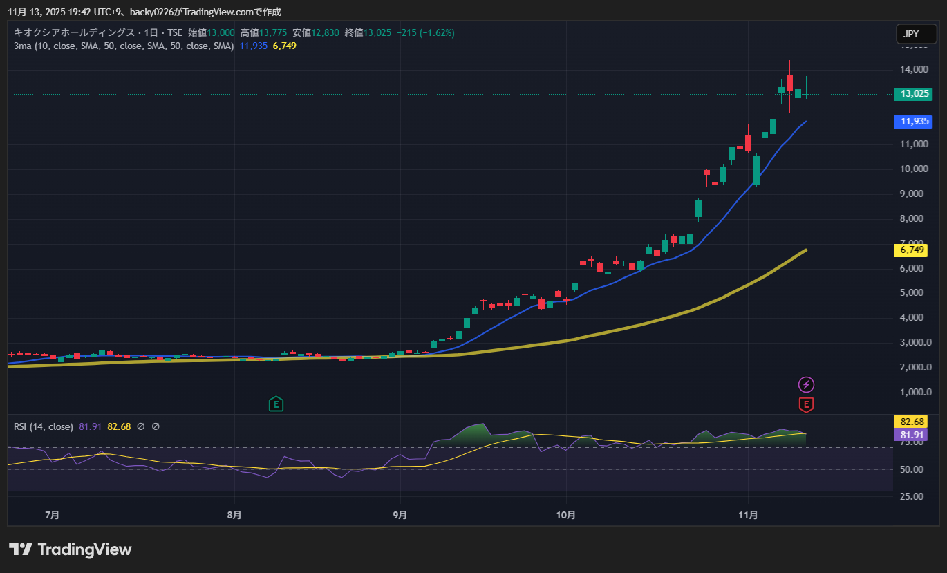 キオクシアの決算が出て、チャートも夜間PTSもとんでもない動きになってますね。