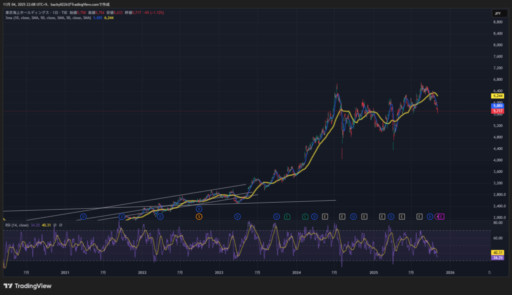 今日は保険の王者・東京海上HD(8766)が最近けっこう下げてます。私は絶賛含み損。。