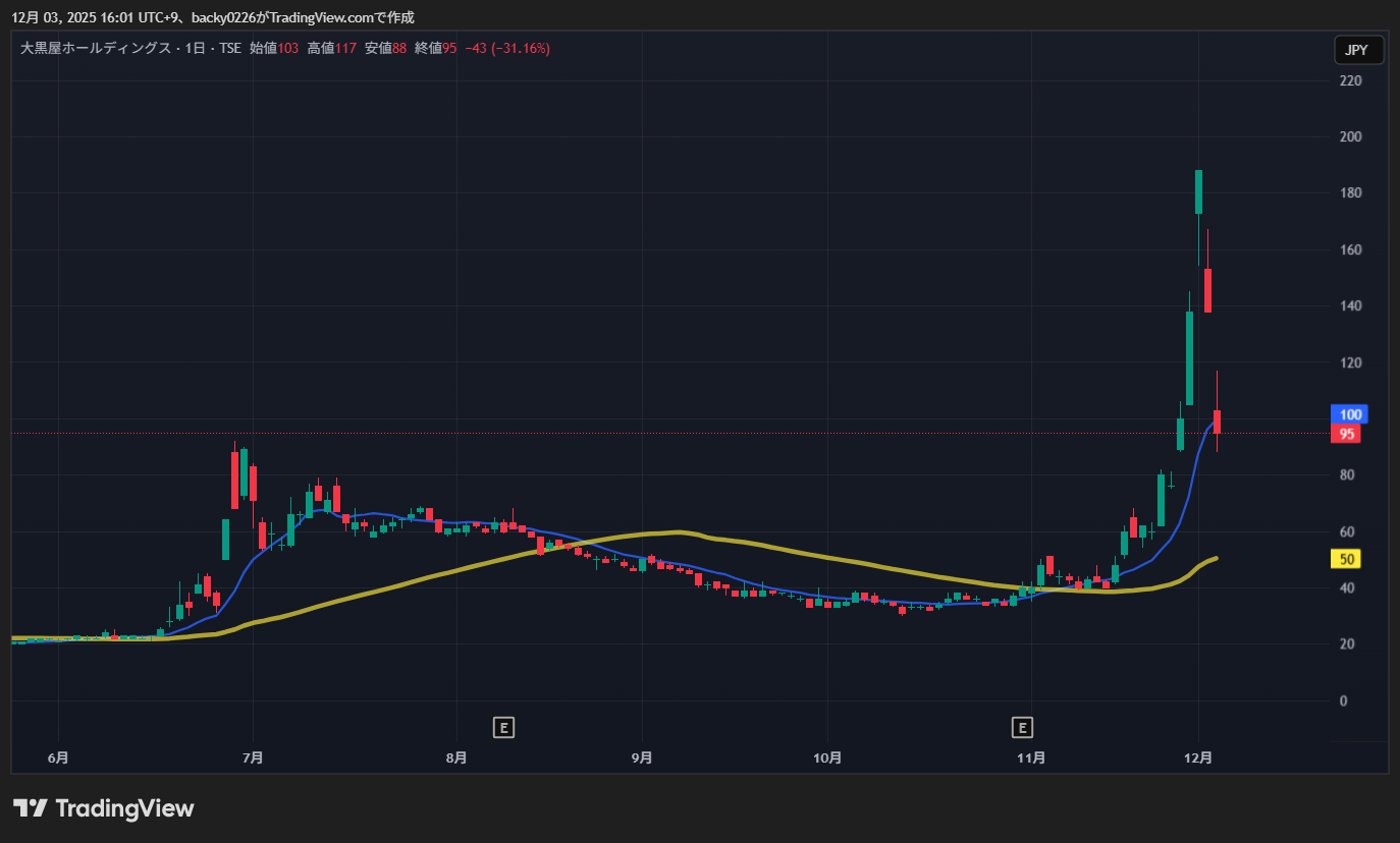 今日は話題の「大黒屋ホールディングスが高値からほぼ半値へ急落した理由」と「なぜ急騰したのか」「仕手株としての危険性」「今後買いなのか(僕は否定的)」まで、初心者でも分かりやすく噛み砕いて解説します。