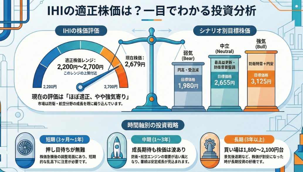 IHIの適正株価はだいたい “2,200円〜2,700円” のレンジが妥当 です。