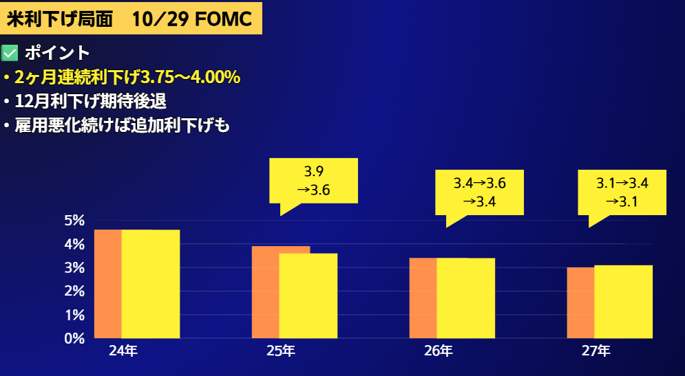 利下げ観測が強まると、将来キャッシュフローの割引率が下がる=グロース資産にプラス。さらにQT(量的引き締め)ペース鈍化~停止の思惑も手伝い、流動性は改善方向に。