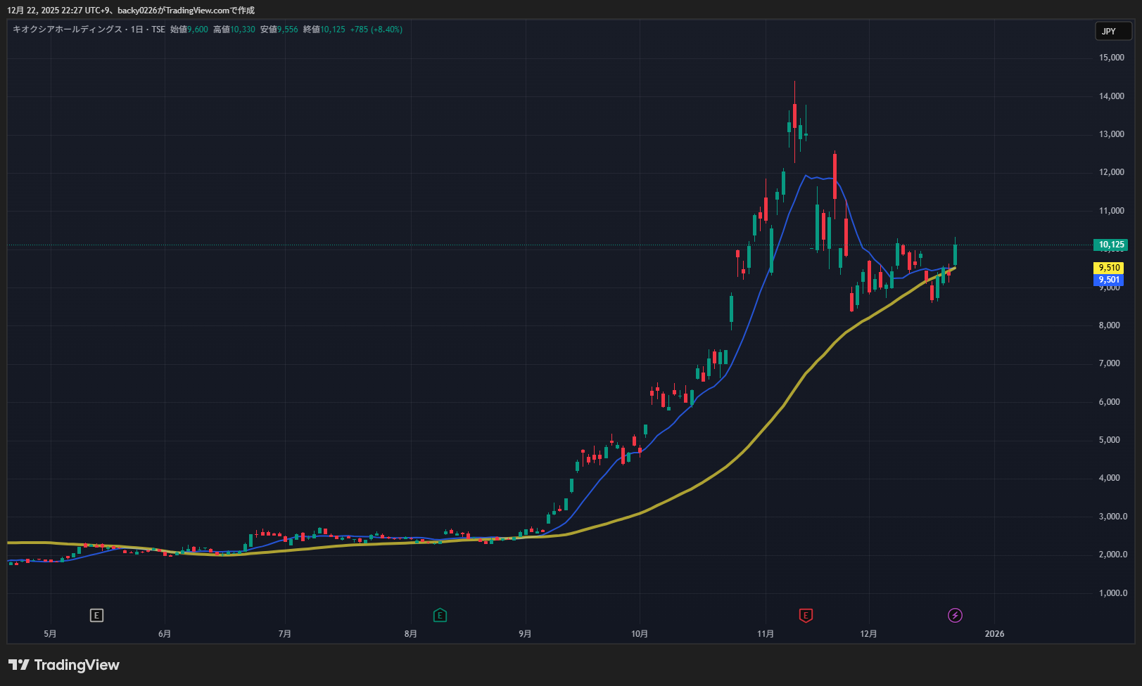 「爆上げの理由」と「今後の株価見通し」を、チャートと市況を絡めて整理します。