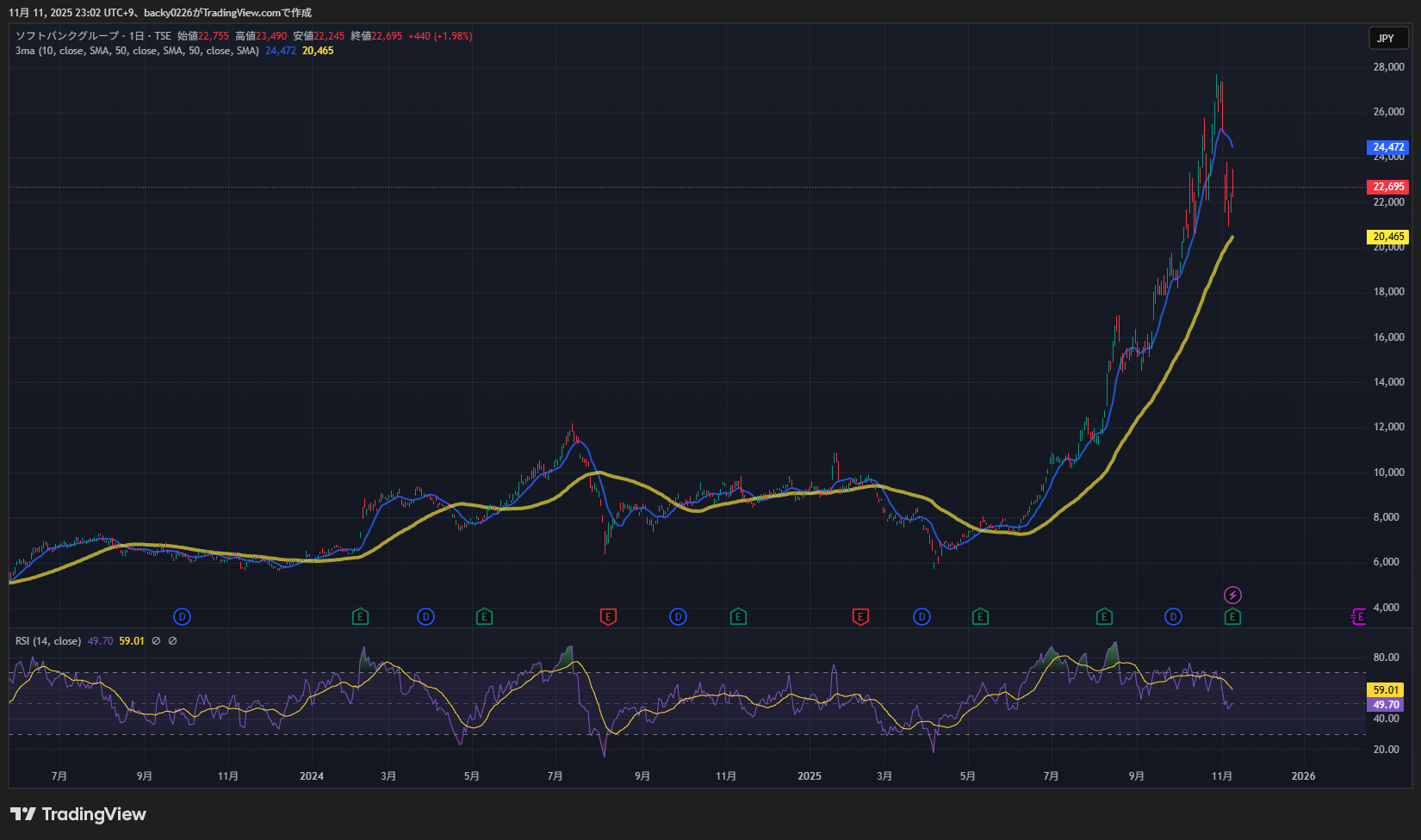 この爆上げを丸ごと取り込んだのがソフトバンクグループです。