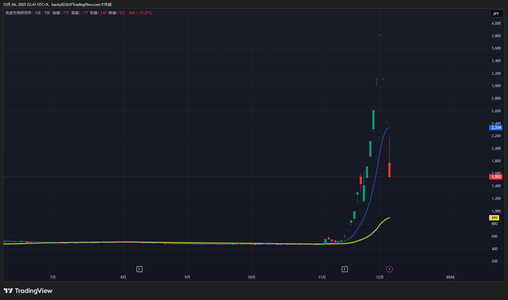 今日は 「免疫生物研究所が“爆上げから爆下げ”した理由と、今どこにいるのか」 を、ざっくり・噛み砕いて・わかりやすくまとめます。