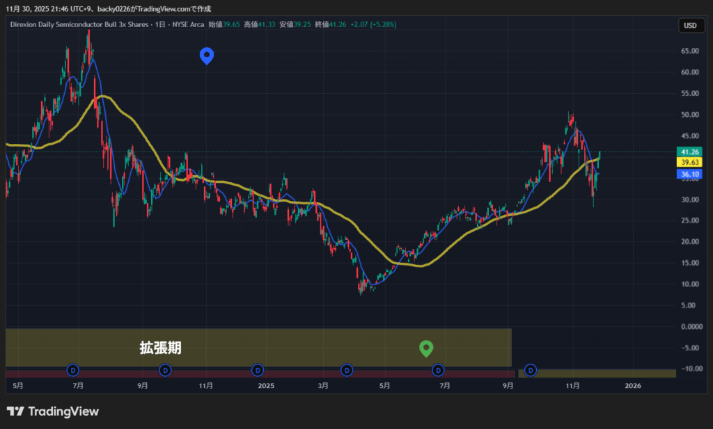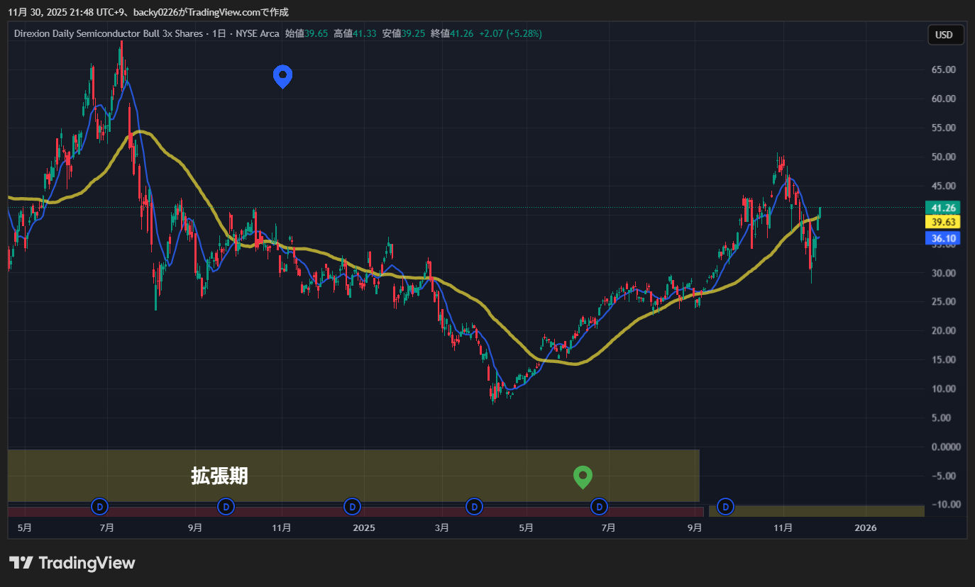 この流れがSOXLの大きな押しにつながった、というイメージです。