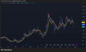 - 出来高:直近の下落局面で出来高増(短期の投げ・ポジ調整を示唆)。