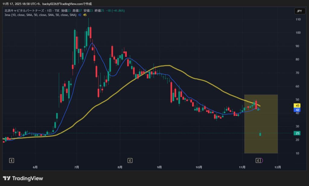 【ヤバい】北浜キャピタル 大暴落!株価 -41% 決算と業績予想修正が原因…わかりやすく解説します。
