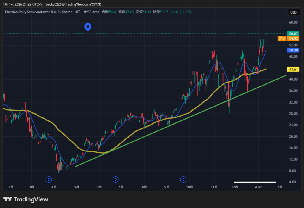 SOXLはどこが天井?56ドル台の上昇局面をテクニカルで徹底考察