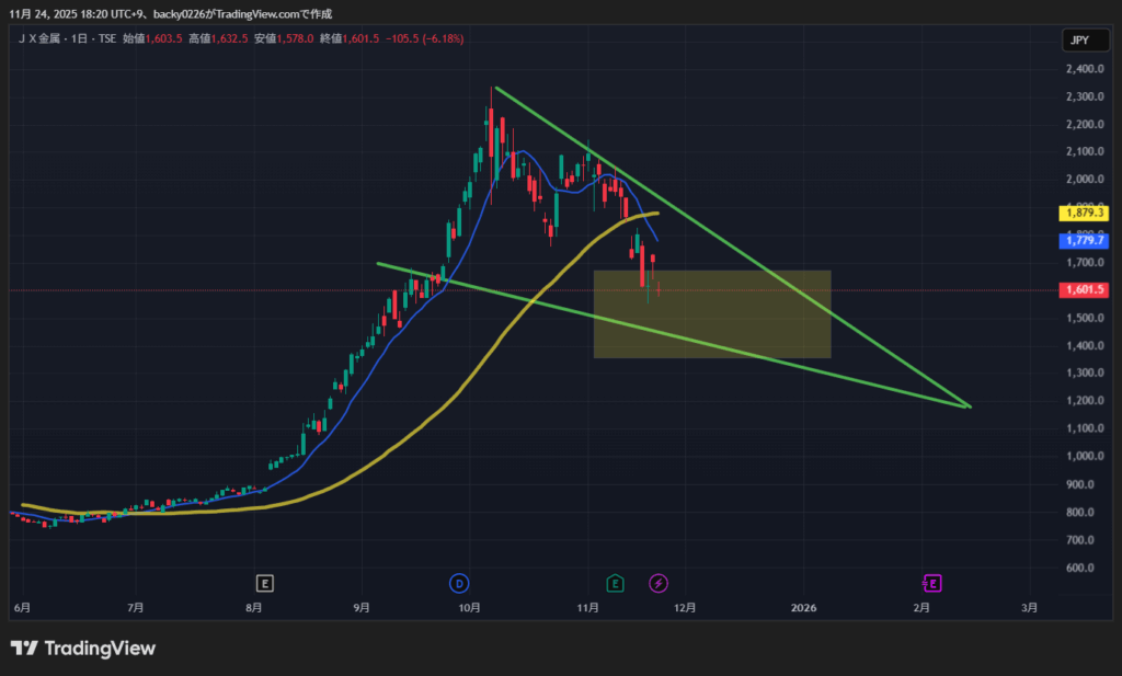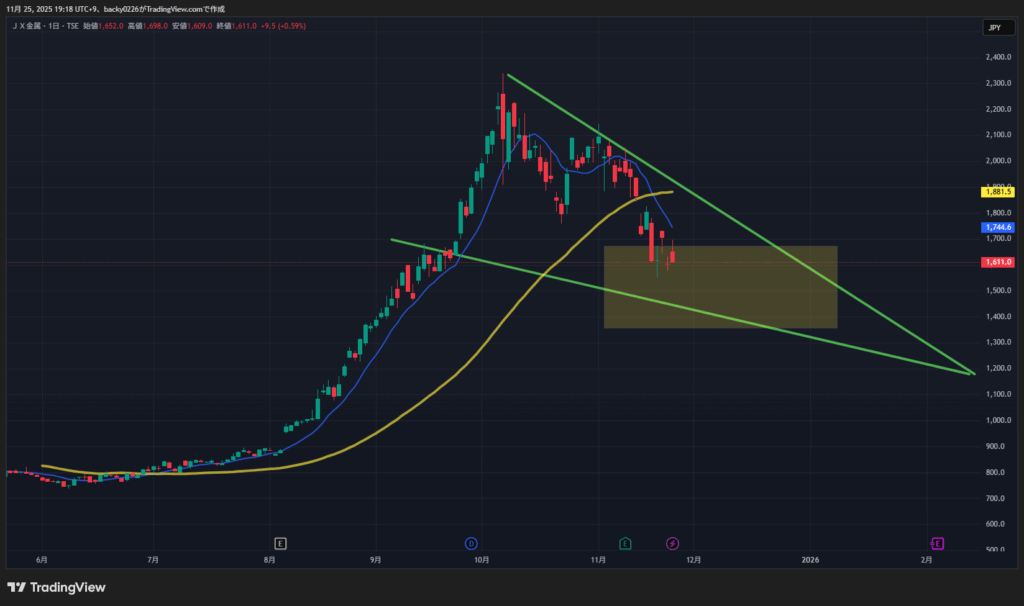 どうもこんにちは、株ちゃんです。 結論から先に言うと──JX金属は「短期の売られすぎ+中期の調整局面が継続」しており、1,500〜1,450円のサポート帯を試しやすい週。ただし中長期の業績や銅市況の見通しは依然強く、1,300〜1,450円は中期の“拾われやすい... -