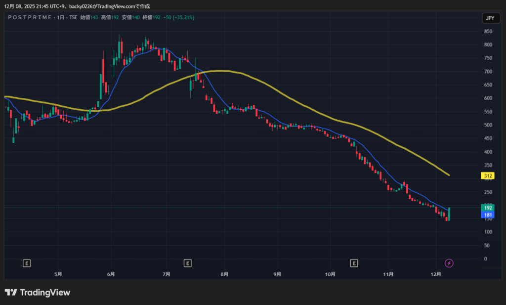 どうもこんにちは、株ちゃんです。今日は「POSTPRIMEが一日で35%爆上げ、でもちょっと待って」というテーマで、チャートをベースに冷静に見通しを整理していきます。 1. POSTPRIMEが35%急騰、結論は「超短期リバウンドでリスク高め」 結論から先に言うと... -
