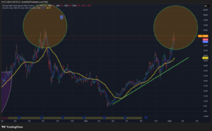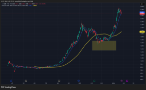 いま 1,900円付近でヨコヨコ。上に SMA(たぶん50日)1,963円 がいて、ここが上値のフタっぽい。