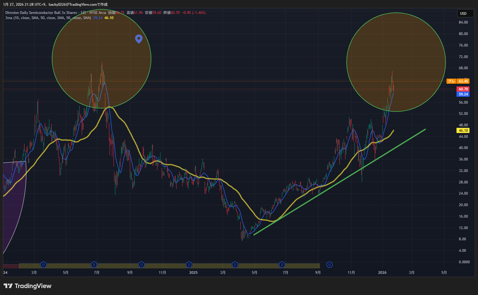 今のSOXLは“崩れ”ではなく、急騰後の調整局面。