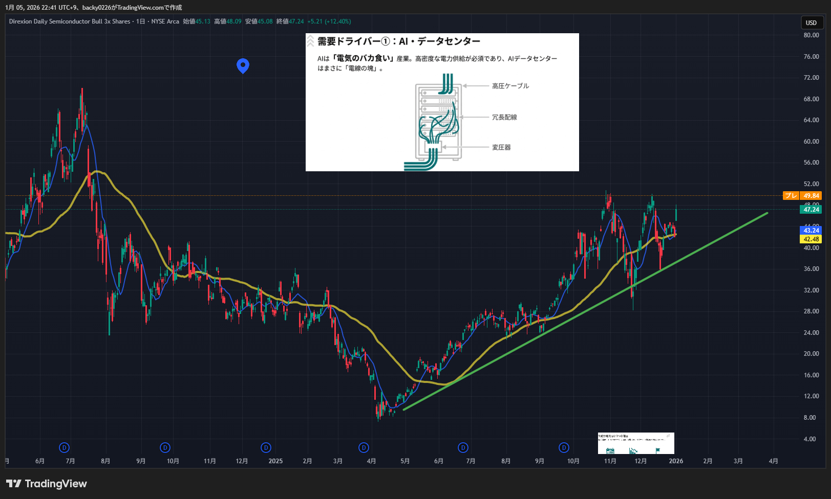私もがっつりもっている半導体レバレッジETF「SOXL」の上昇理由と見通しをメモリを軸に分かりやすく解説します。
